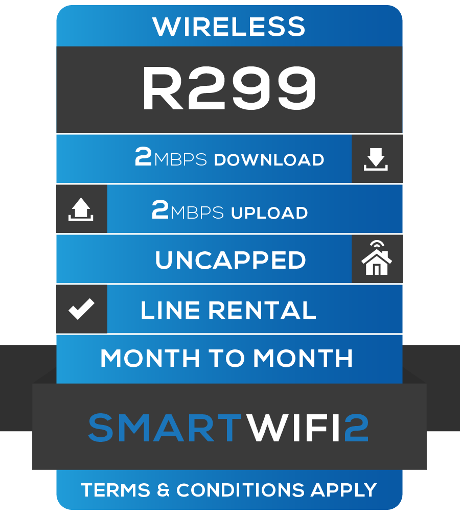 | SMARTwifi2 | 2 Mbps | 2 Mbps | UNCAPPED | R299/pm |